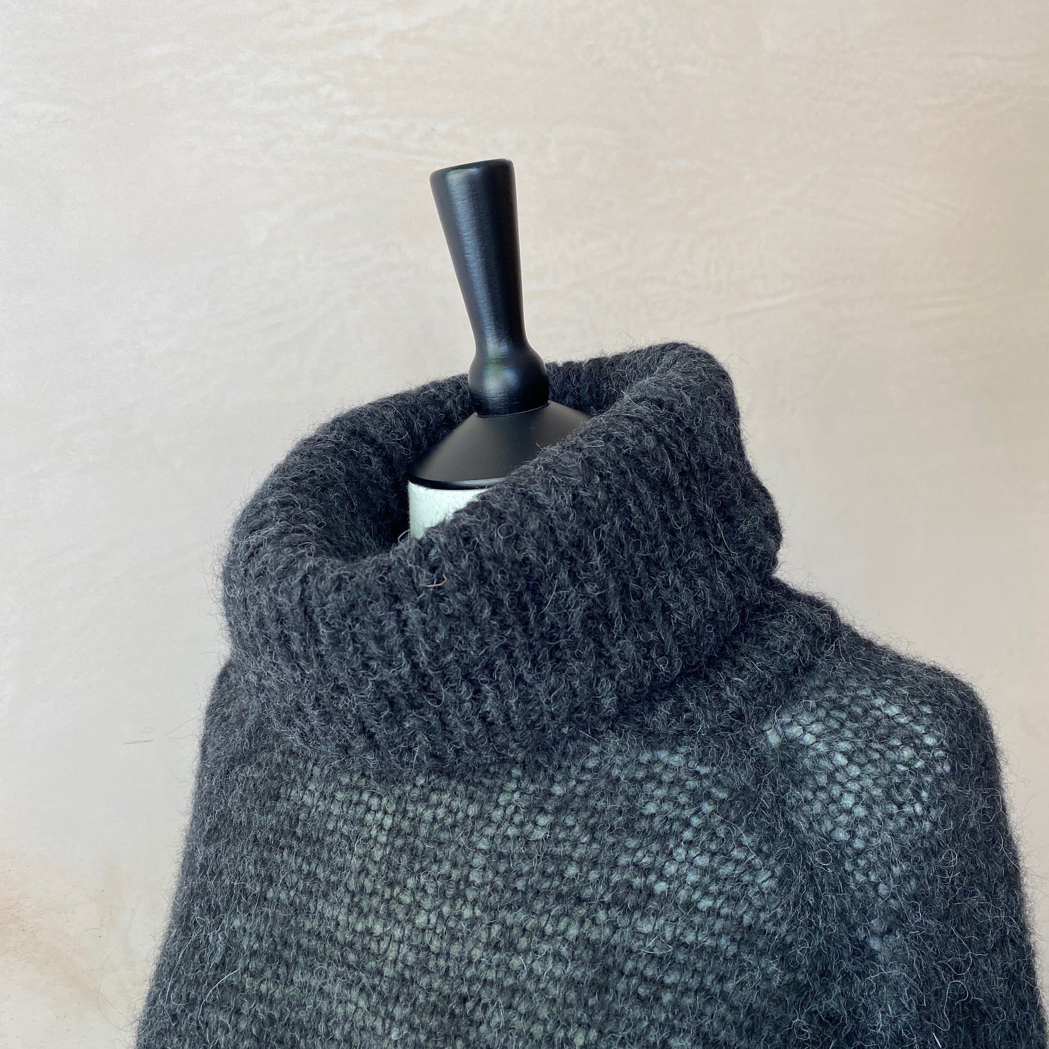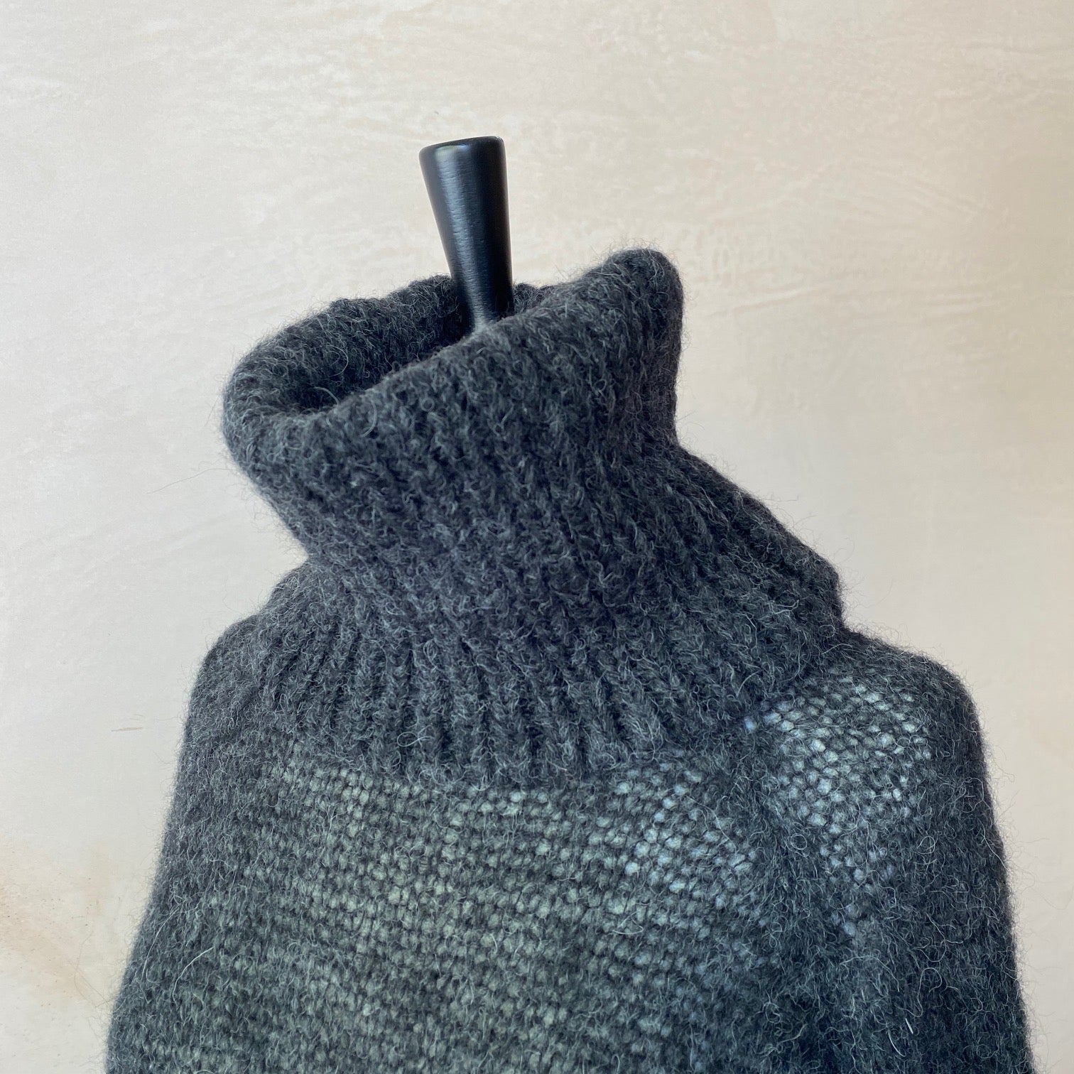 This roll neck sweater is hand knitted using a super fine alpaca thread that will gently snuggle you up during cold windy days. It can be worn over any type of top, dress or even directly on your skin as Alpaca wool doesn’t cause itchiness and is hypoallergenic.