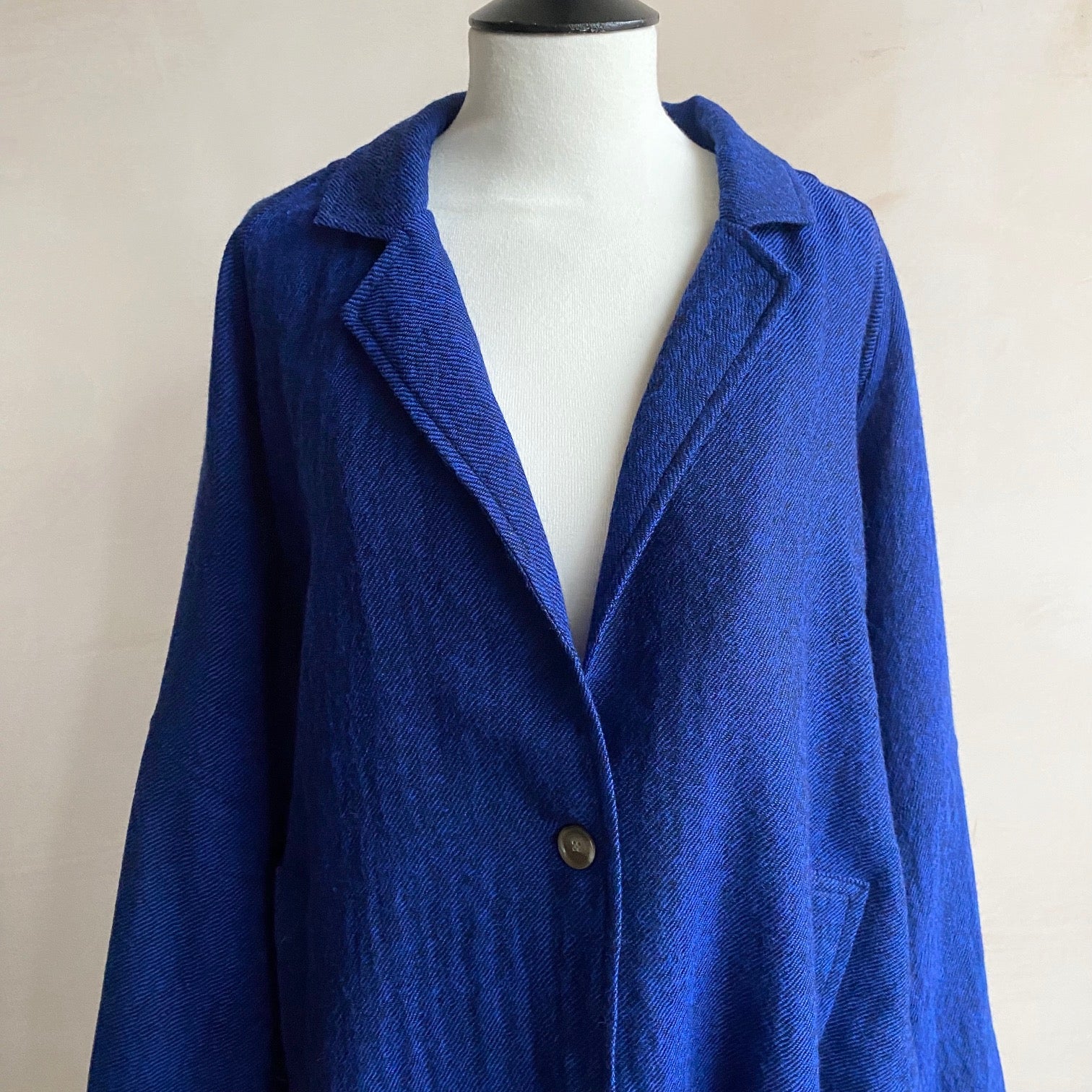 Balloon Sleeve light weight wool long Coat -Blue-