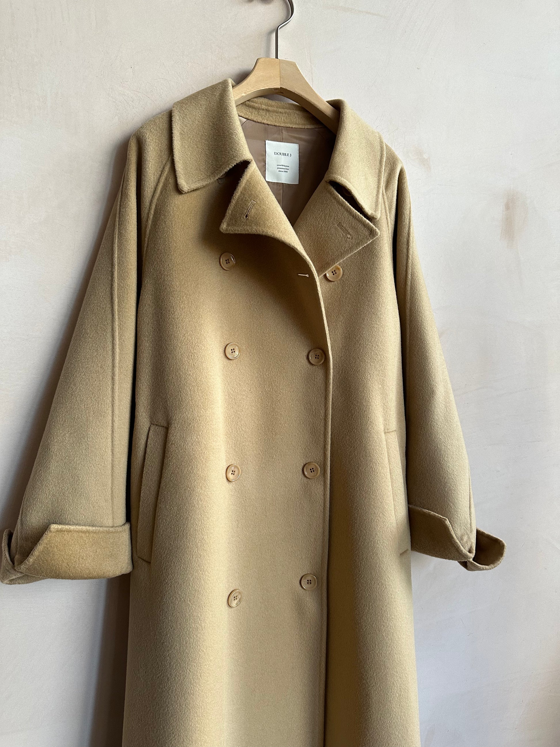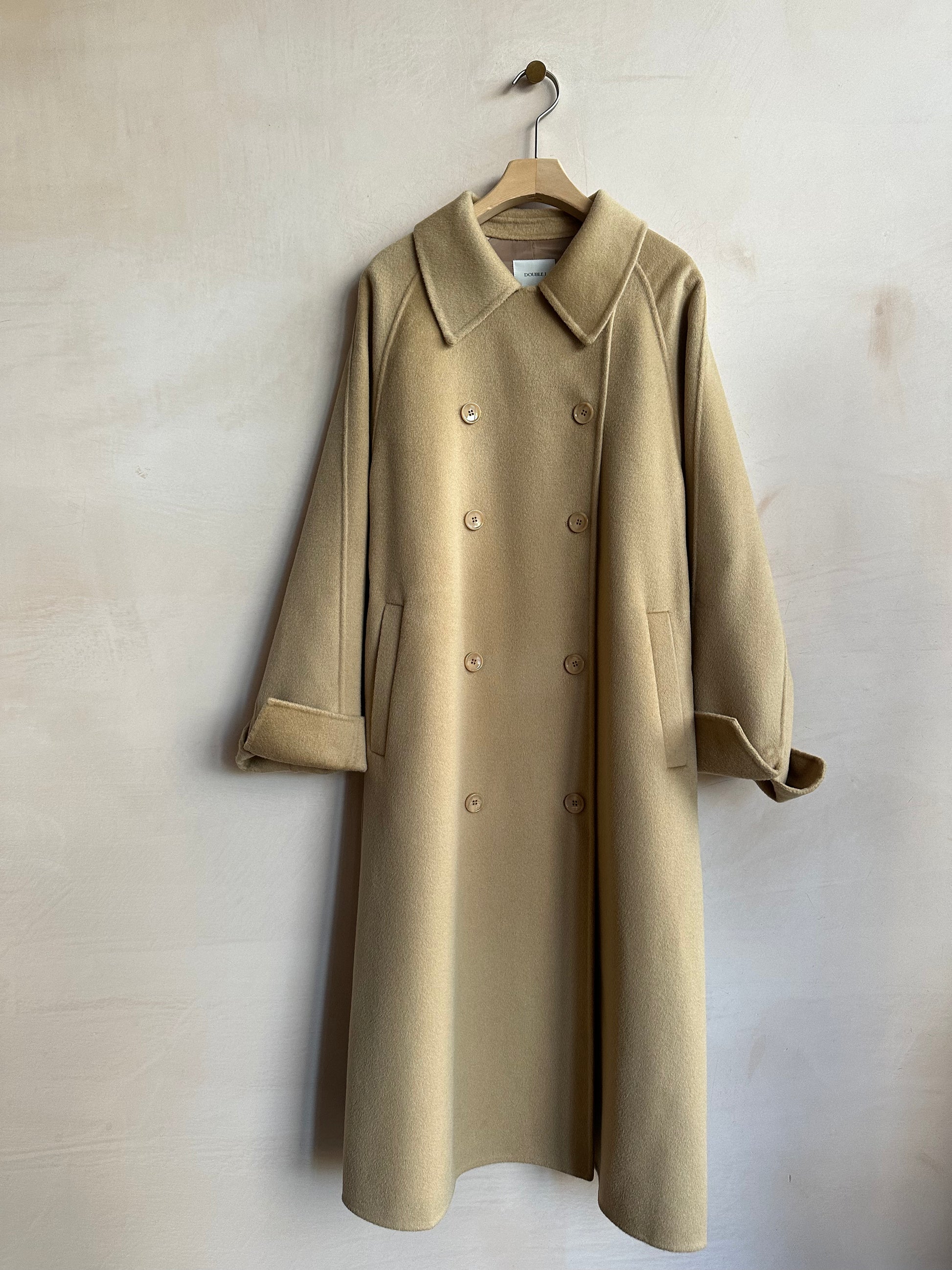 Wool Long double coat -Beige-